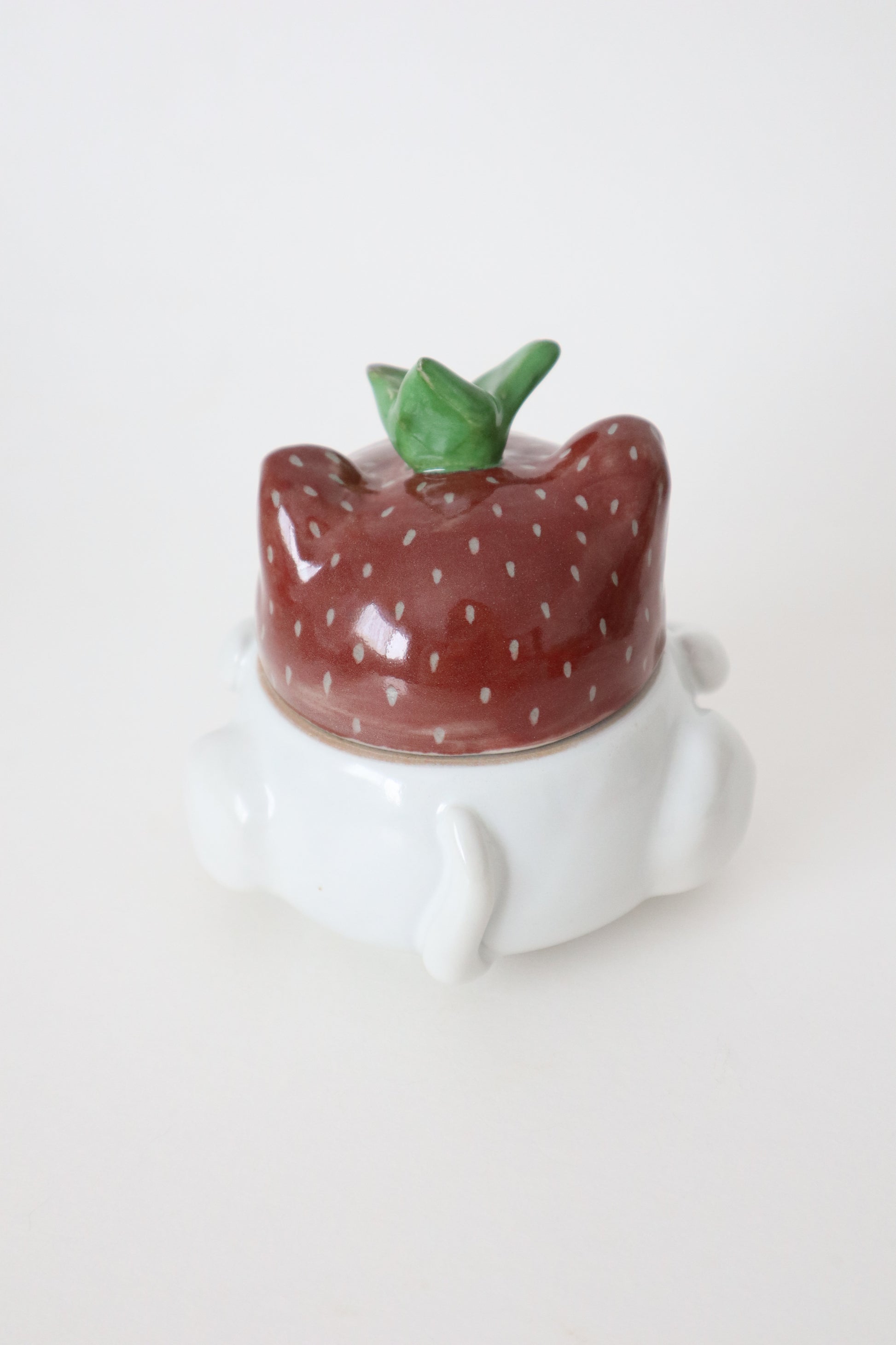 Snow the strawberry kitty at your service to hold your tea, spices, trinkets or just keep you company. Snow loves to smize and give you kisses. She will annoyingly lay on half of anything you're doing like laptops, notebooks but it's only because she loves you.