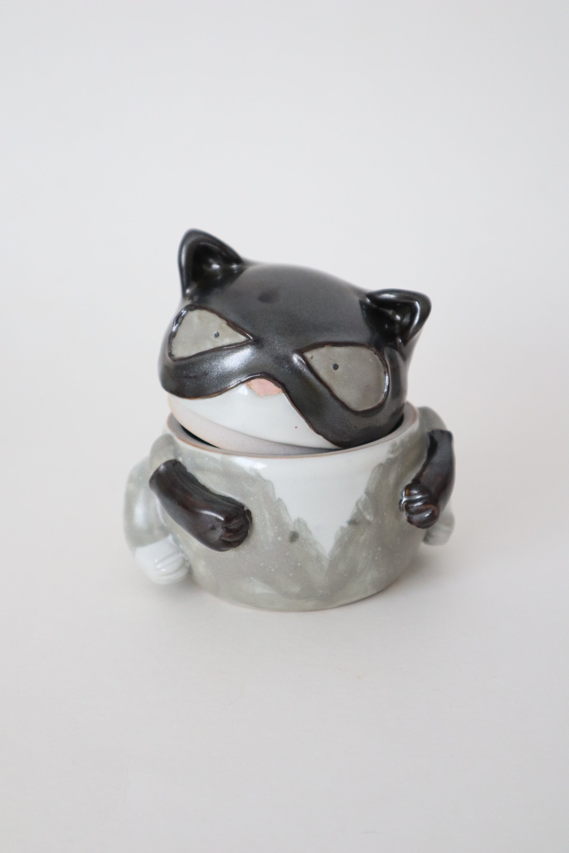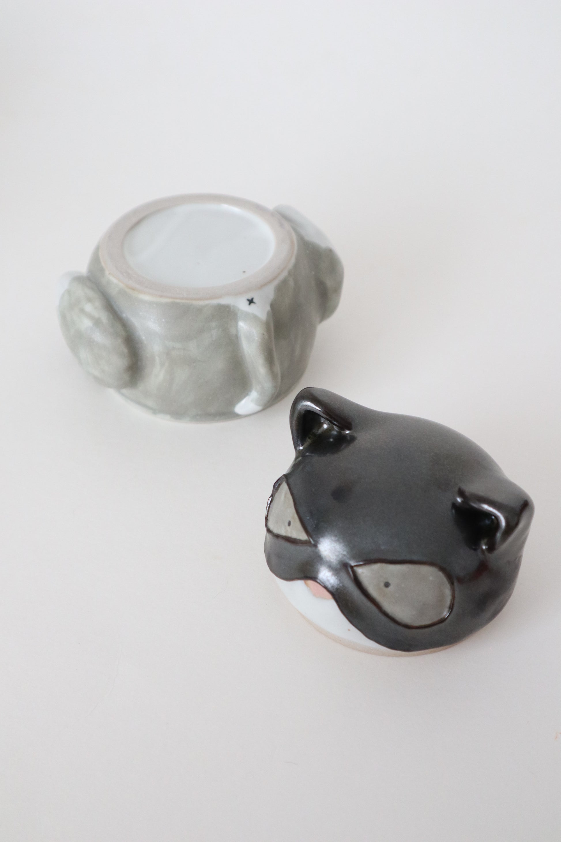 Zoey the cat woman kitty at your service to hold your tea, spices, trinkets or just keep you company. Zoey's favorite holiday is halloween - it's the only day she feels normal because she wears her cat woman suit every day of the year. She can be a little sneaky and sneak out in the middle of the night but she will always find her way back home to you.
