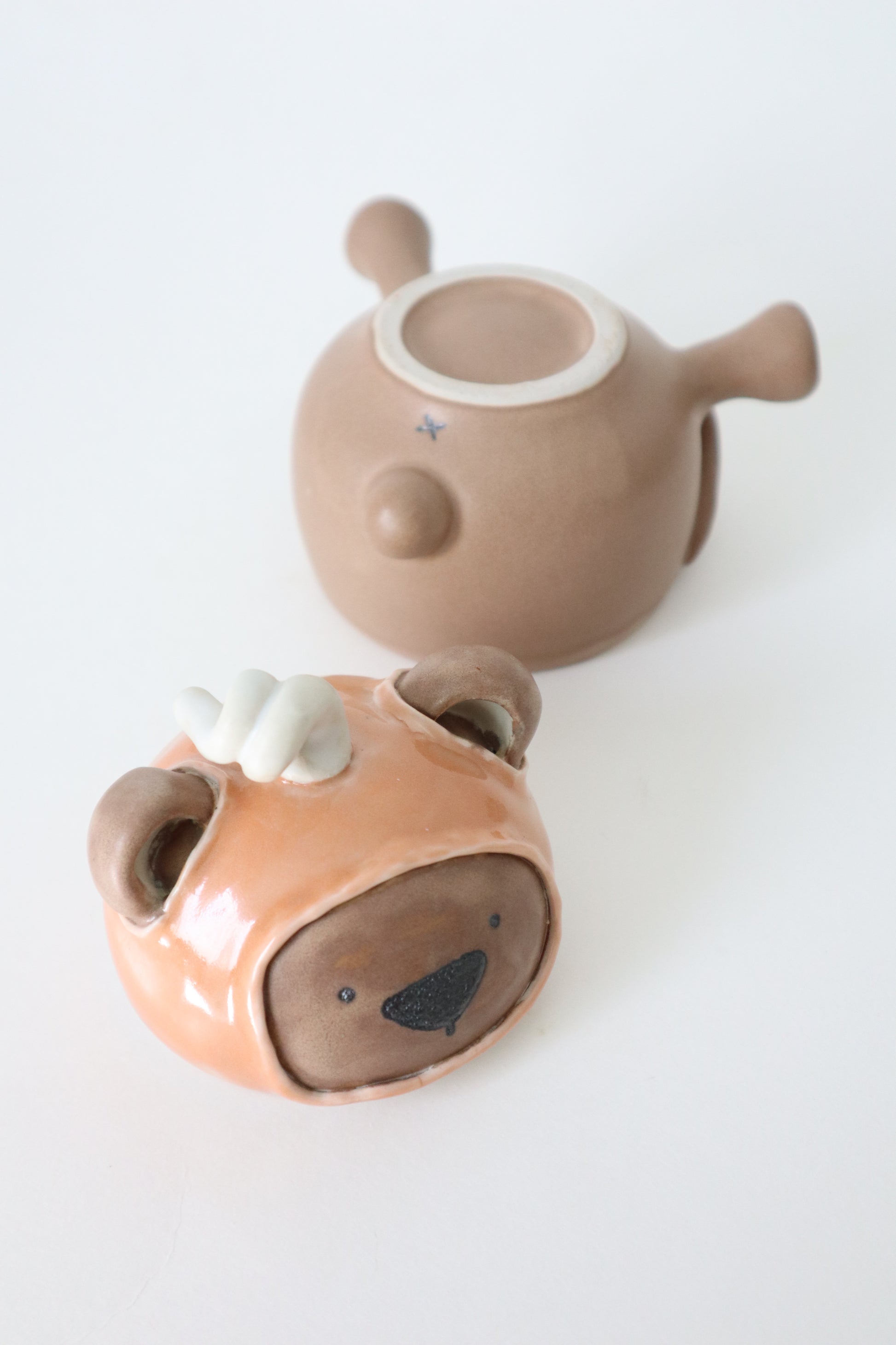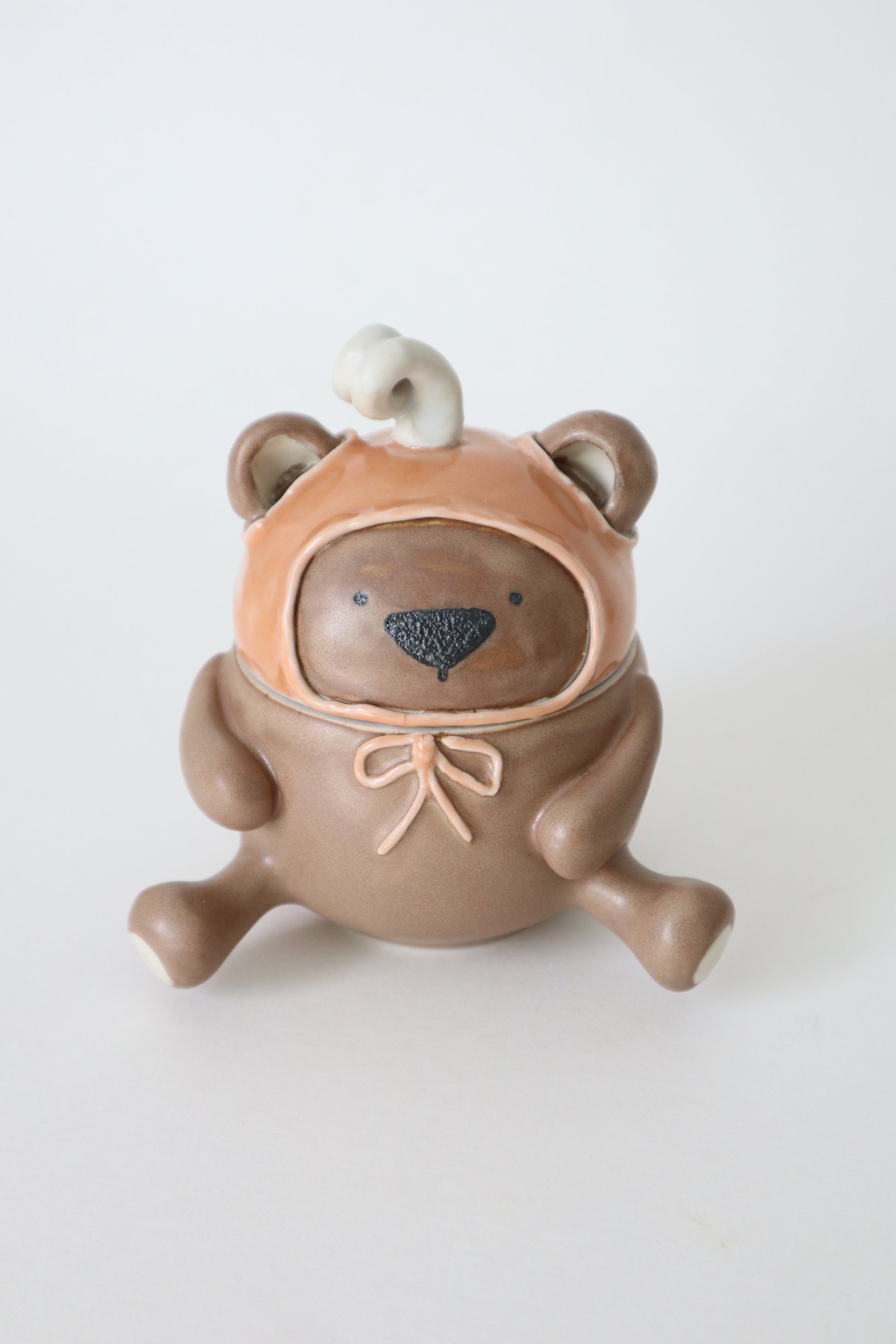 Freddy the pumpkin teddy at your service to hold your tea, spices, trinkets or just keep you company. Freddy is fully in the spirit of cozy fall season. He's not afraid to admit he loves pumpkin spice.